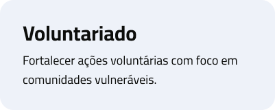 Promover o desenvolvimento humano sustentável por meio da educação, redução das desigualdades, proteção ao meio ambiente e fortalecimento de comunidades inclusivas. Construir um ecossistema dedicado ao enfrentamento da desigualdade social por meio de ações de assessoramento, defesa e garantia de direitos, articulando o poder público, empresas e sociedade civil para ampliar o acesso à proteção social e efetivar os direitos de todas as pessoas.